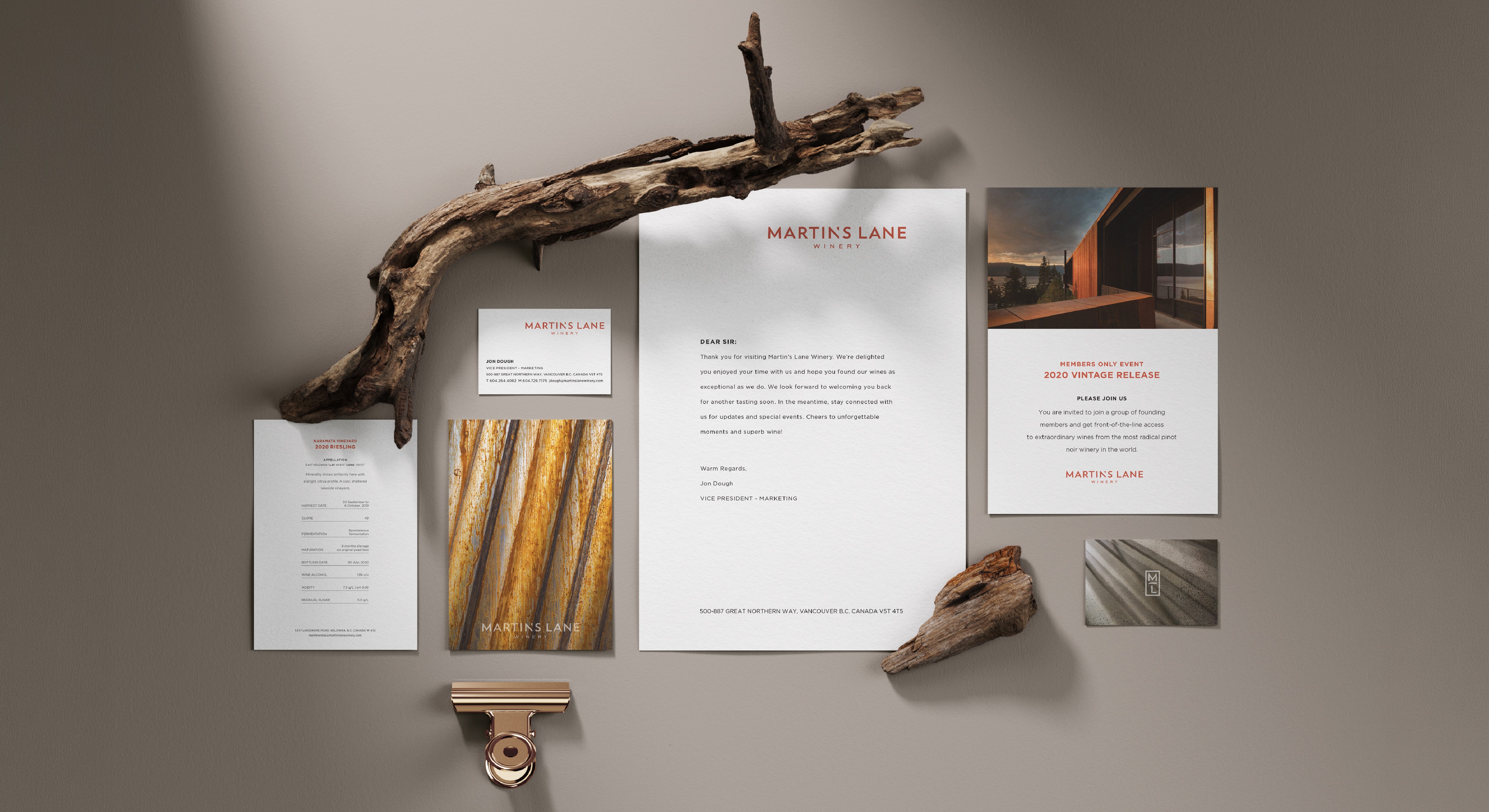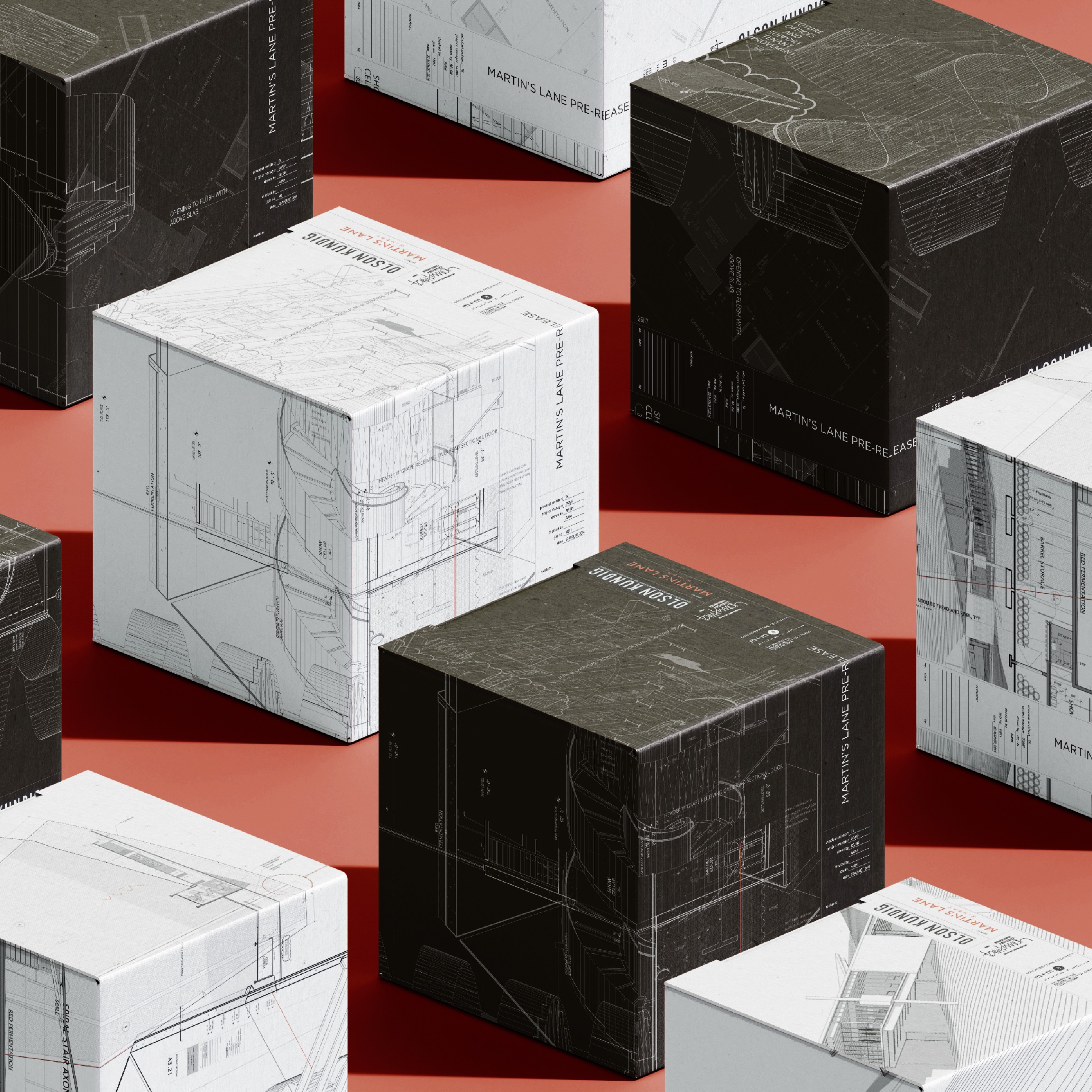 The label system draws directly from that environment, taking cues from the materials, textures, and surfaces found throughout the winery. Rather than relying on traditional cues, the design reflects the same sense of precision and innovation present in the architecture, translating those qualities into a restrained and tactile visual language.